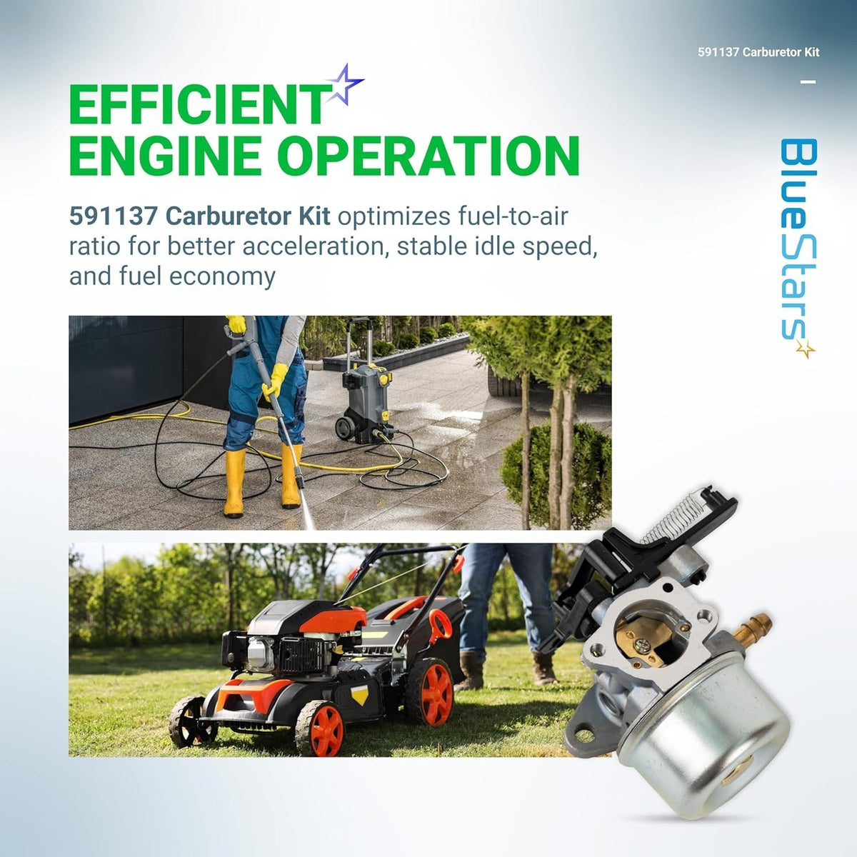 - Engineered for pressure washers and walk-behind lawn mowers.
