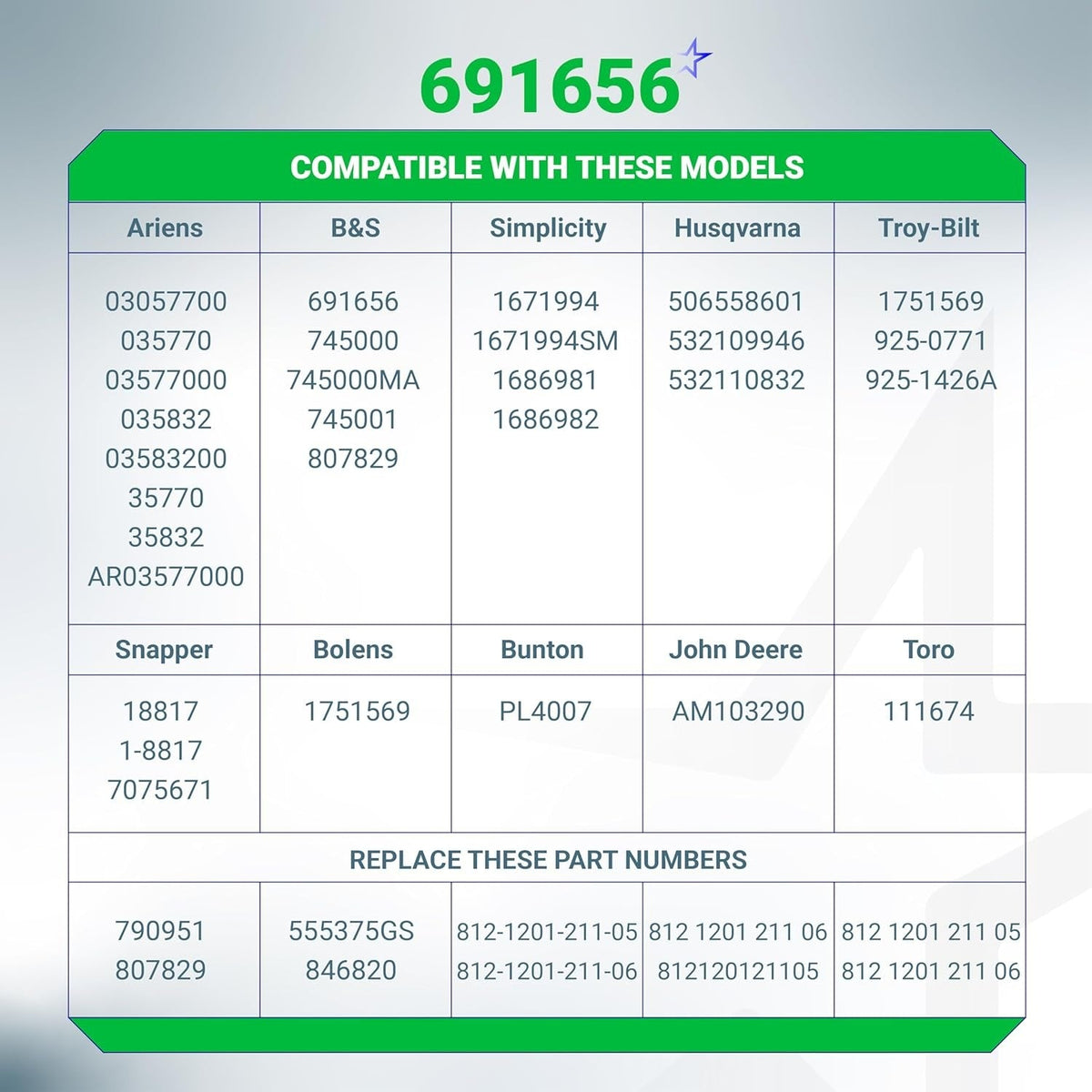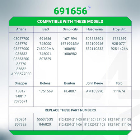 - Briggs & Stratton: 691656, 790951, 807829, 555375GS
