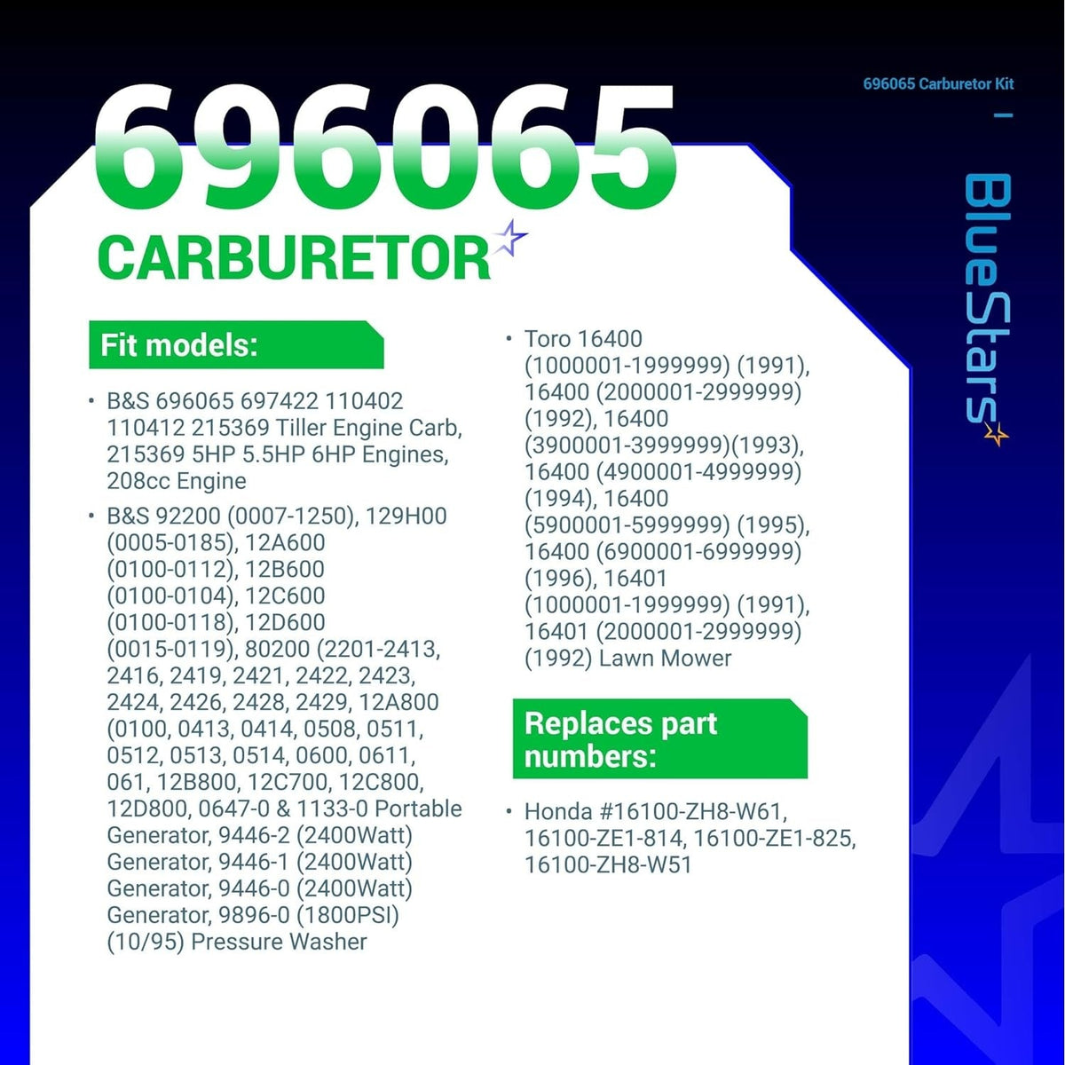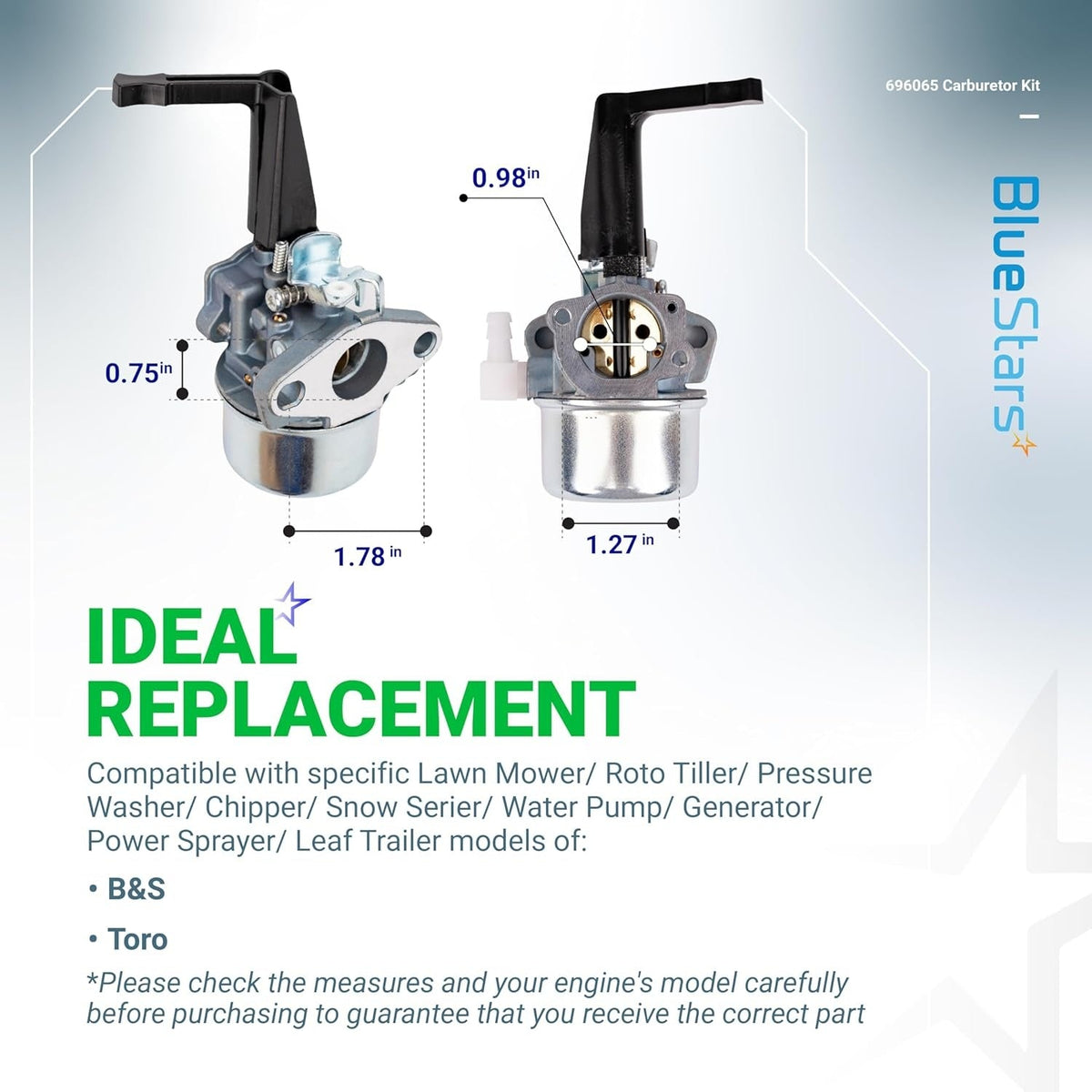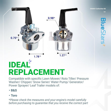 - Ensure mounting surfaces are clean before installing the new carburetor with the provided gaskets.