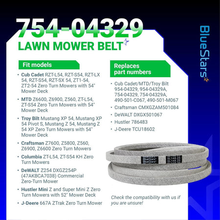 - MTD / Cub Cadet / Troy-Bilt: 754-04329, 954-04329, 954-04329A