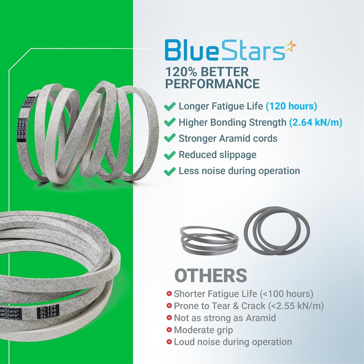 - Construction: Polyester cord reinforced with a fabric and rubber compound for durability and wear resistance.