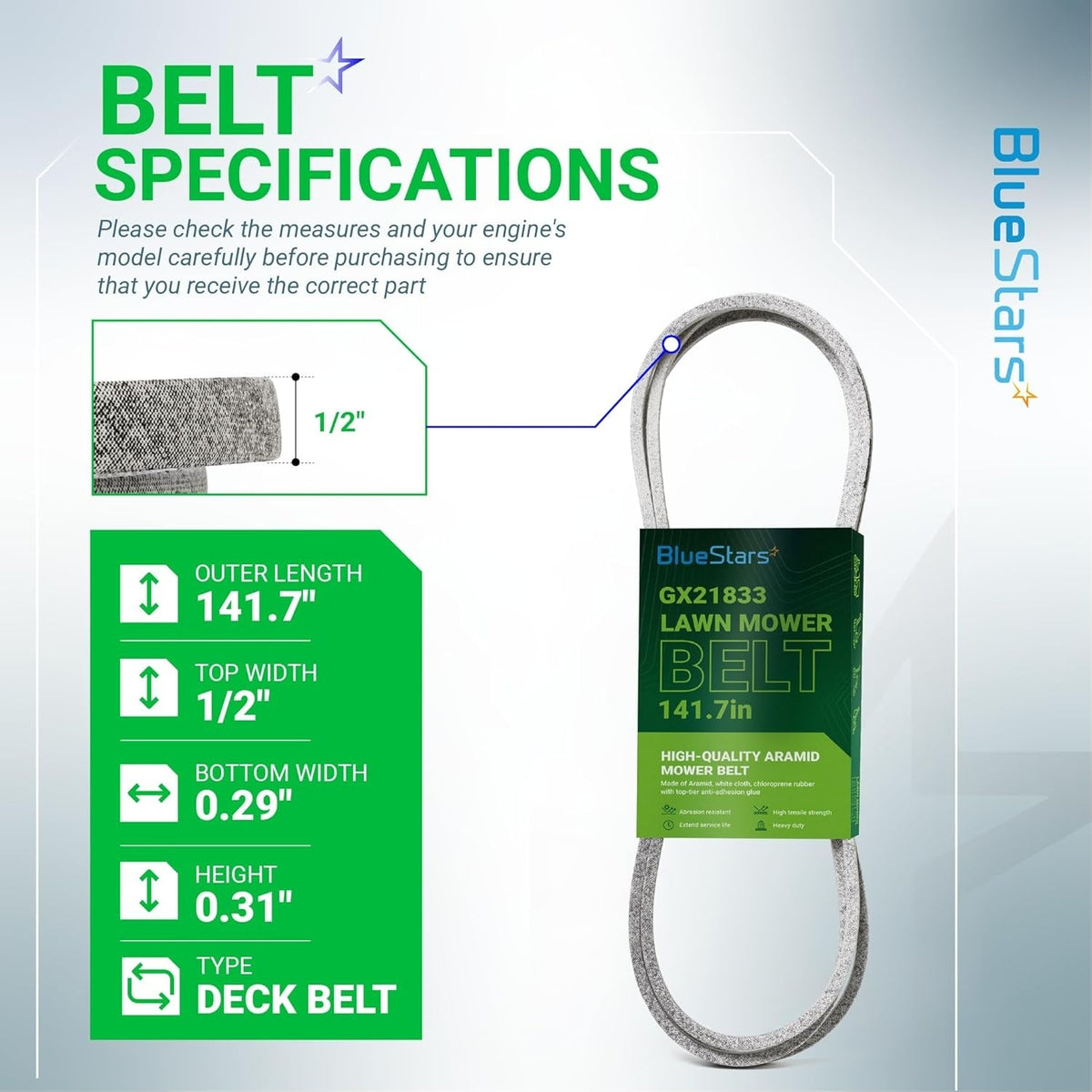 Lawn Mower Deck Belt GX21833 1/2" x 141.7"