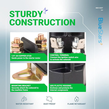 • Converts a low-amperage signal from the ignition switch into the high-amperage connection required to operate the starter.