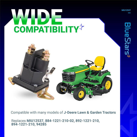 This solenoid is compatible with many models of J-Deere Lawn & Garden Tractors