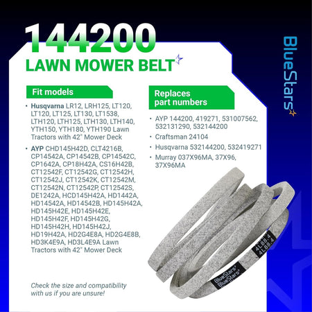 - Commonly used on models equipped with a 42-inch cutting deck, particularly those with a double idler pulley system.
