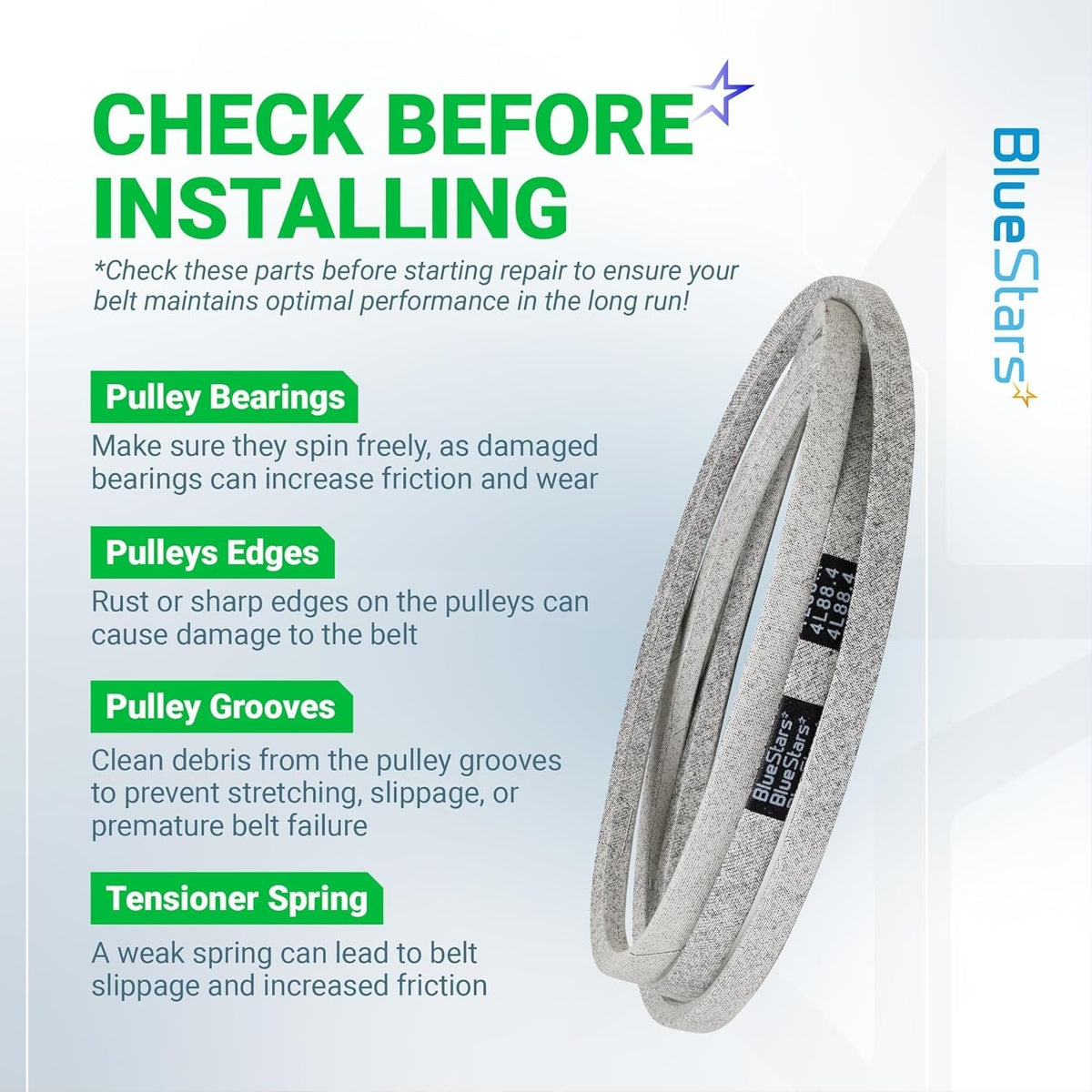 - Ensure all pulleys are clean, free of debris, and spin without obstruction before installing the new belt.