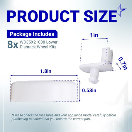 [Lifetime Warranty] WD35X21038 Dishwasher Lower Rack Wheel and Stud - Compatible with GE Kenmore Dishwashers - Replaces WD12X10267 PS11726733 AP59863653 - Pack of 8