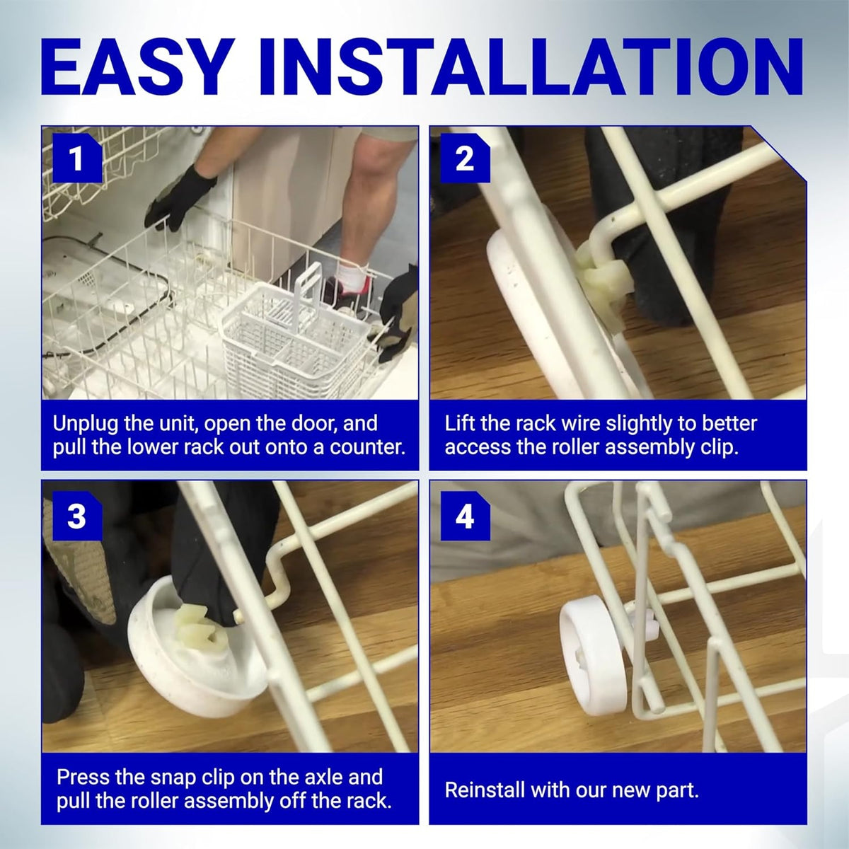 - Cleaning: Wipe down the metal rack wires where the new wheels will attach to remove any grease or mineral buildup.