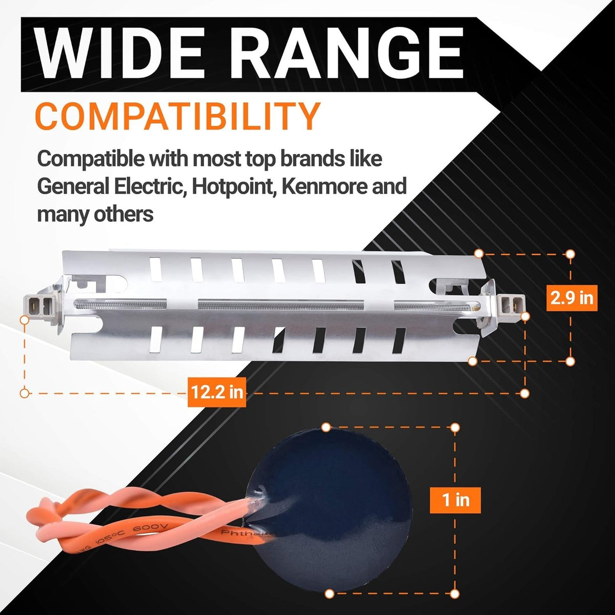 The WR51X10055 Refrigerator Defrost Heater and WR50X10068 Thermostat Kit is a premium-grade replacement component designed specifically for GE and Hotpoint refrigerators. This kit is engineered to replace part numbers AP3183311, PS303781, and AP3884317, ensuring a perfect fit and optimal performance.