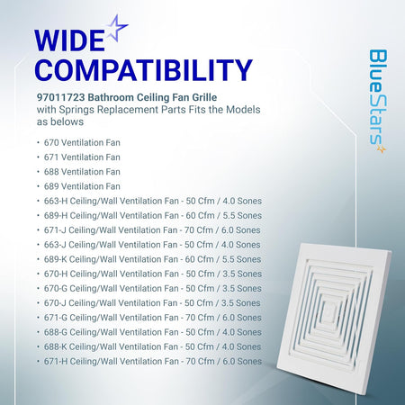 S97011723 Bathroom Ceiling Fan Cover Bathroom Ceiling Grille with Springs Plastic (9-1/4'' x 9'')