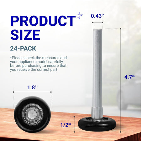 - Direct replacement for standard rollers with a 1.8-inch wheel diameter and a 4.7-inch stem length.