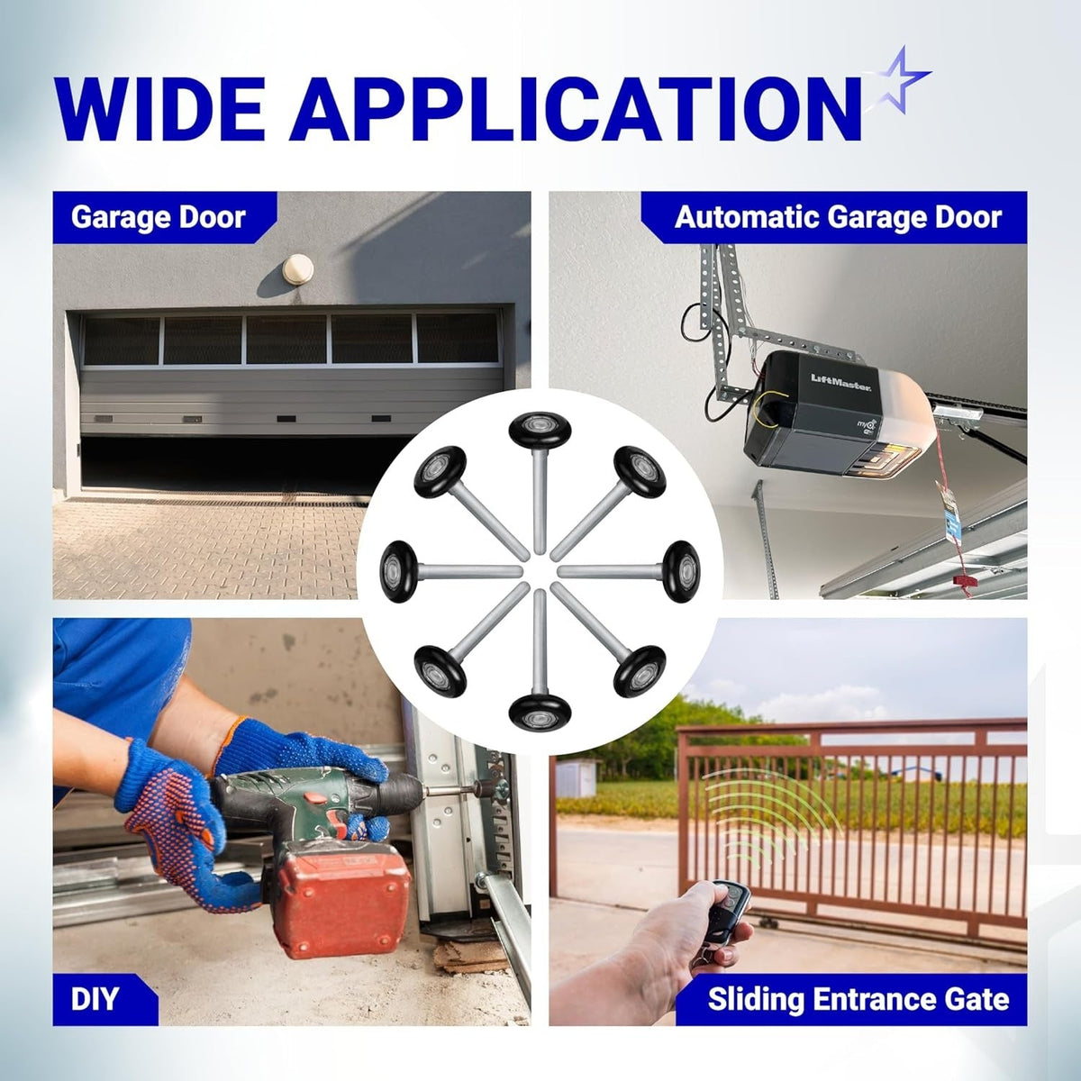 [Lifetime Warranty] 1.8" Nylon Garage Door Rollers with 4.7" Stem - 6200ZZ Sealed Bearing 8 Balls Design - Replacement for Standard 2" Track Garage Doors (Black) - Pack of 24
