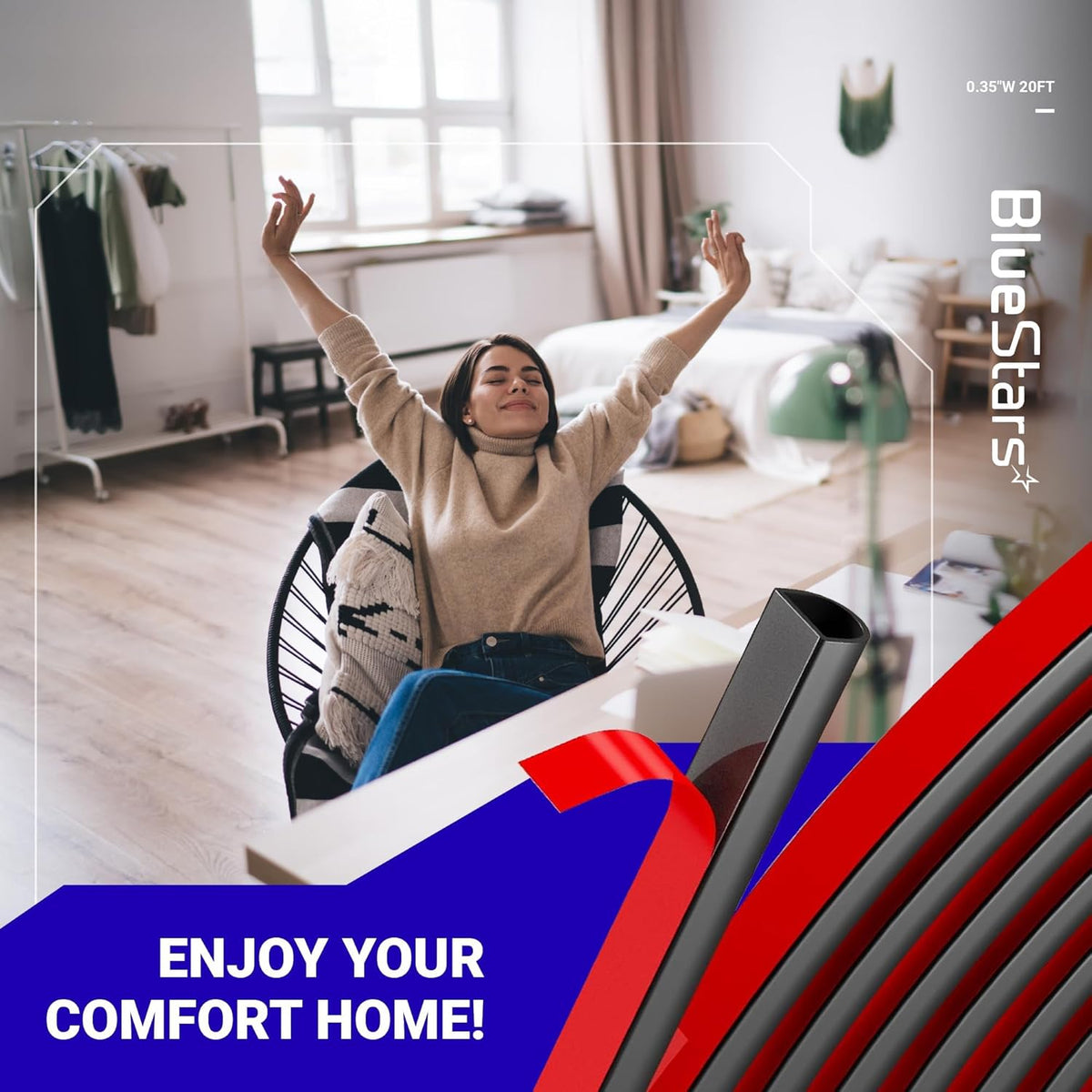 Installation is straightforward and can be completed in approximately 5 minutes by any DIY enthusiast. The weather stripping features an ultra-strong adhesive backing that adheres firmly to surfaces without requiring nails or screws. With a simple peel-and-stick application, you can quickly install it on doors, windows, or other gaps.