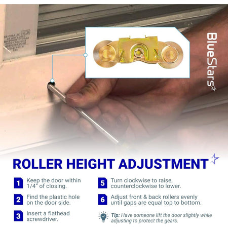 - Clean the door track of all dirt and debris before installing new rollers.