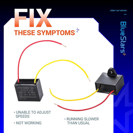 • Improved Fan Speed: If your ceiling fan is running slower than usual or not functioning at all, the CBB61 capacitor is the first component to check.