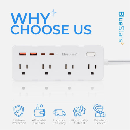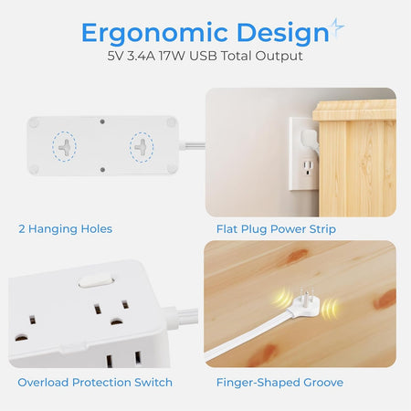 Two hanging holes on the back allow for easy mounting on walls, baseboards, or furniture. ETL certification and strict quality testing ensure that your power strip meets the highest industry standards for safety and performance.