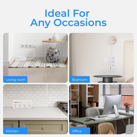 Supporting a voltage range of 100V-250V, this compact power strip comes with a durable 13A, 1875W extension cord, allowing you to power and charge up to 12 devices from a single wall socket. It is perfect for: