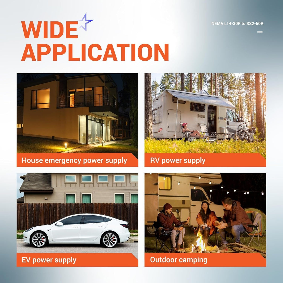 This adapter is compatible with 50A NEMA SS2-50P generator cords, RV cords, and marine cords. It connects effortlessly to most distribution centers, transfer switches, and marine inlets, making it an ideal solution for connecting generator power to your RV, motorhome, trailer, or any vehicle equipped with an SS2-50P inlet. This versatility ensures a reliable energy source wherever your travels take you.