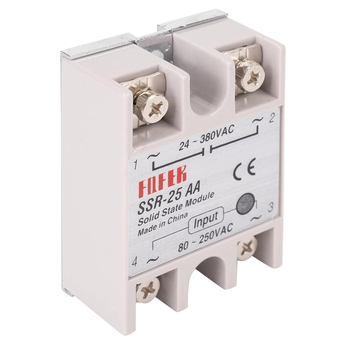 The Solid State Relay SSR-25AA is a high-performance AC to AC input relay module designed for seamless operation. With an input range of 80-250VAC and an output range of 24-380VAC, this 25A single-phase semi-conductor relay module is perfect for controlling AC loads efficiently.
