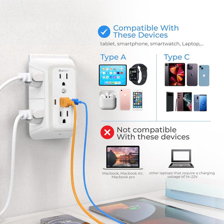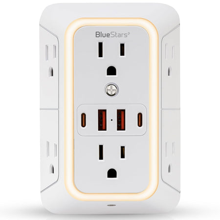 - 10 ports total: 2 USB Type-A ports, 2 USB Type-C ports, and 6 AC power outlets