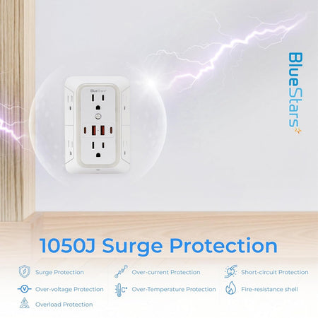 Your safety is our priority. This power strip is equipped with advanced protection features: