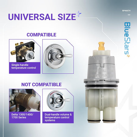 Tired of inconsistent water temperature and pressure? The RP46074 single-function pressure-balance cartridge is your solution.