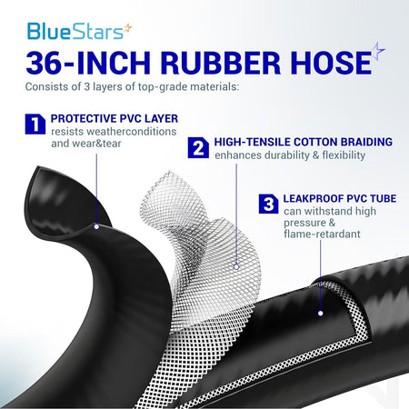 • Material: High-quality rubber hose with solid brass connectors for secure sealing