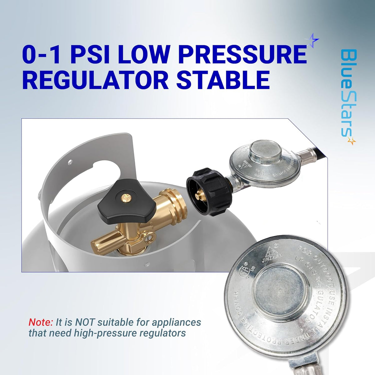 - Pressure Regulation: Low Pressure 0-1 PSI Regulator for stable flow (Please verify hose connectors and compatibility with your appliance before purchasing)