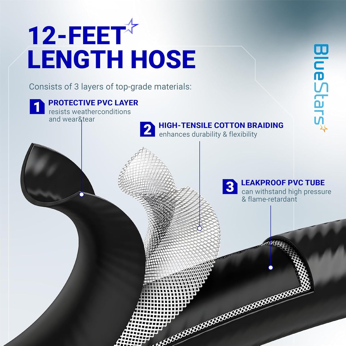 12 Feet Universal QCC1 Low Pressure Propane Regulator with 12 FT Hose, 3/8" Female Flare Nut