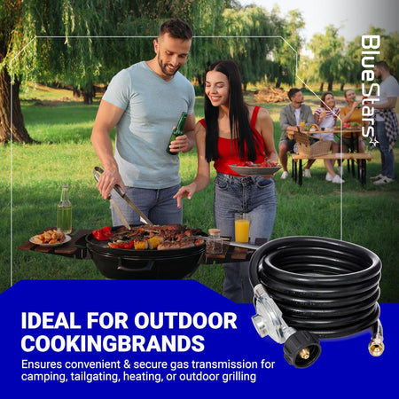 Compatible with Weber, Char-Broil, Nexgrill, Monument, Dyna-Glo, Brinkmann grills, and other outdoor propane grills with 3/8" male flare fittings. Also fits Camp Chef Flat Top Griddle, Camp Chef 2-Burner Stove, Blackstone 28in & 36in Griddles, Dyna Glo DGP350S