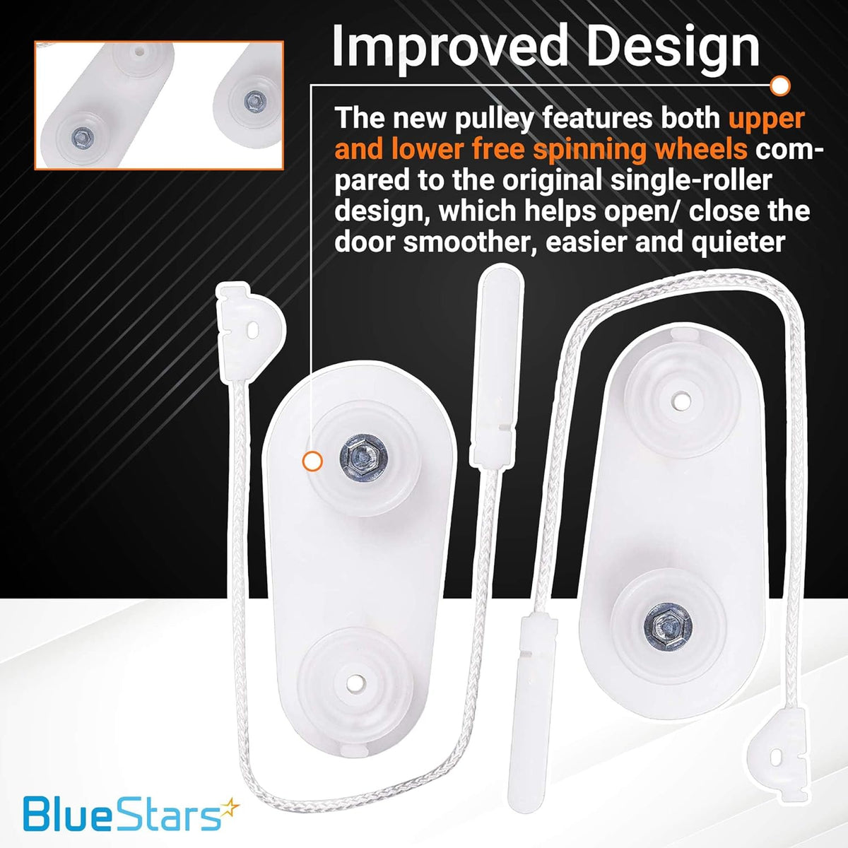 - Includes 2 door pulleys and 2 door hinge cables for complete replacement
