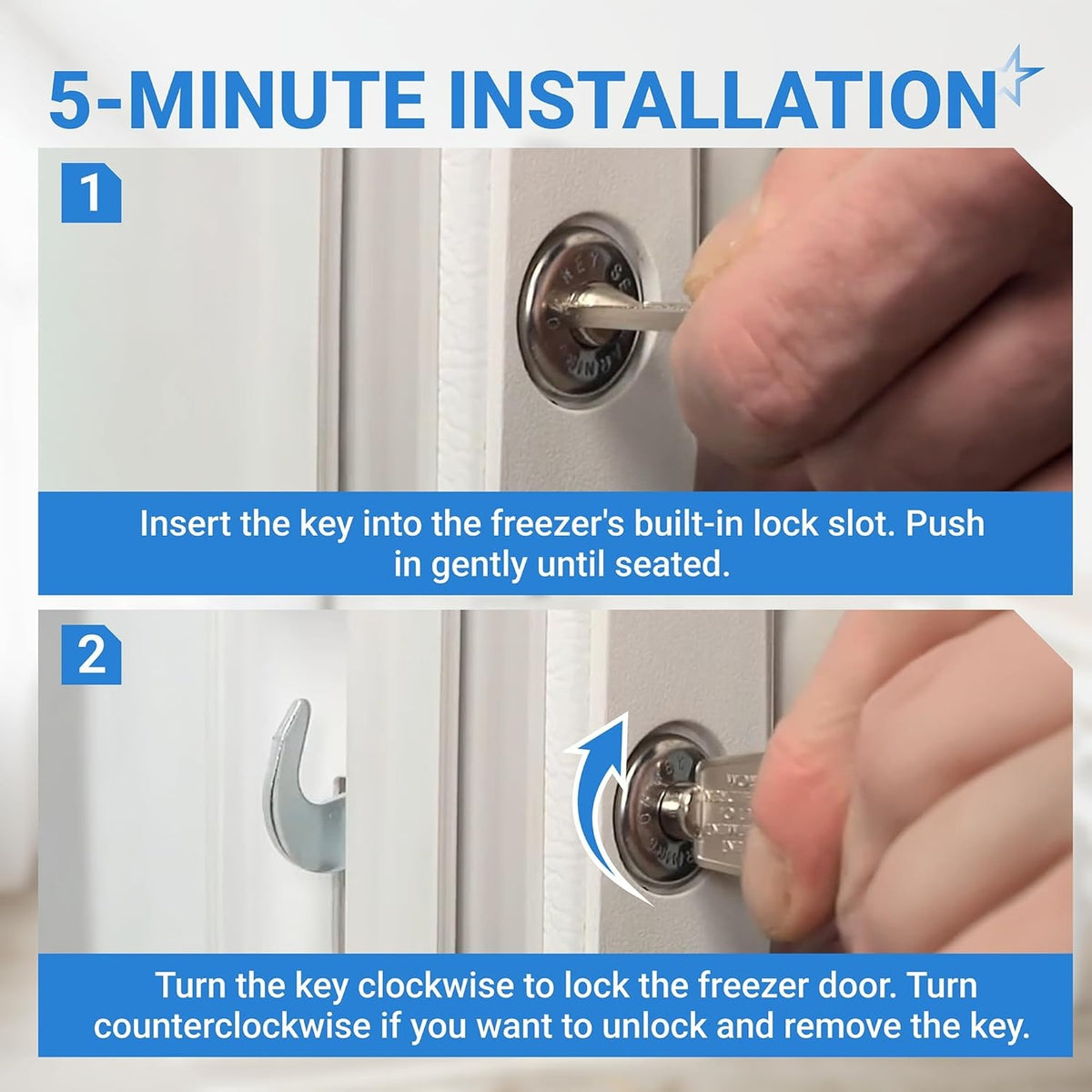 - Secures refrigerator or freezer door lock