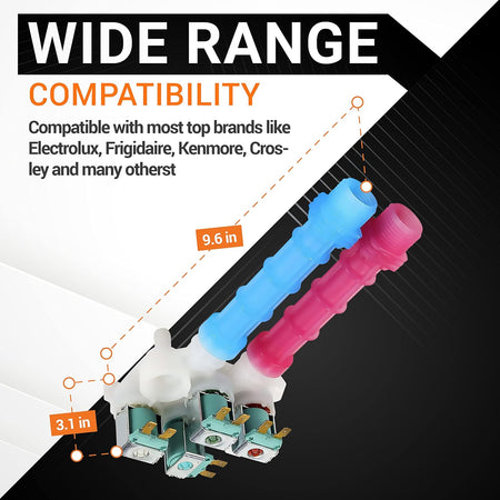 Upgrade your washing machine with the high-quality 134637810 Washing Machine Inlet Valve Assembly. This reliable replacement part is compatible with various Frigidaire, Electrolux, and Kenmore washing machines, ensuring optimal performance and efficiency.
