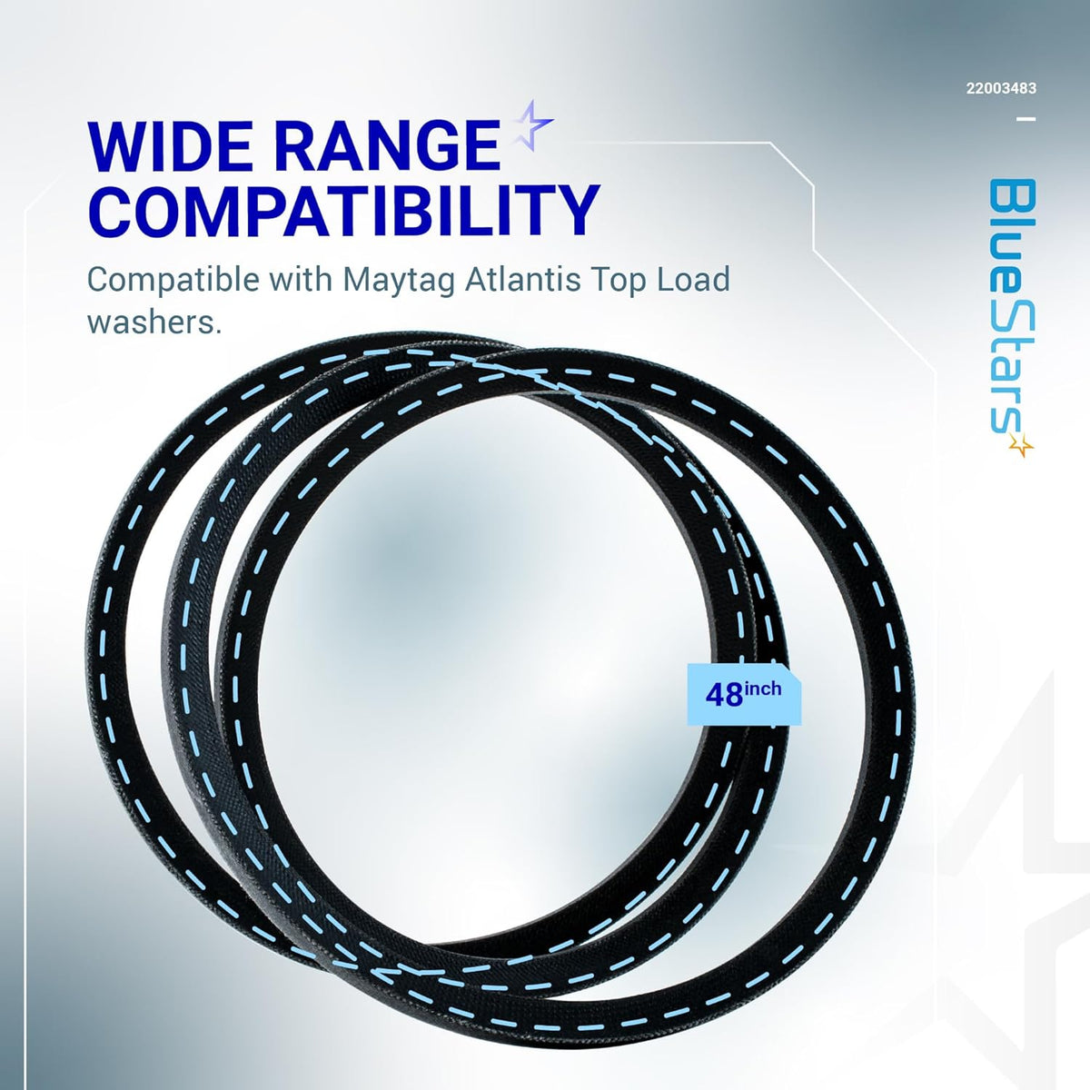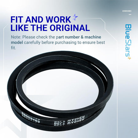 This listing is for a 22003483 Washer Drive Belt, a genuine replacement part compatible with select Maytag and Jenn-Air washing machines. This high-quality drive belt ensures proper operation of your washer's drum, enabling efficient and reliable spinning and washing cycles.