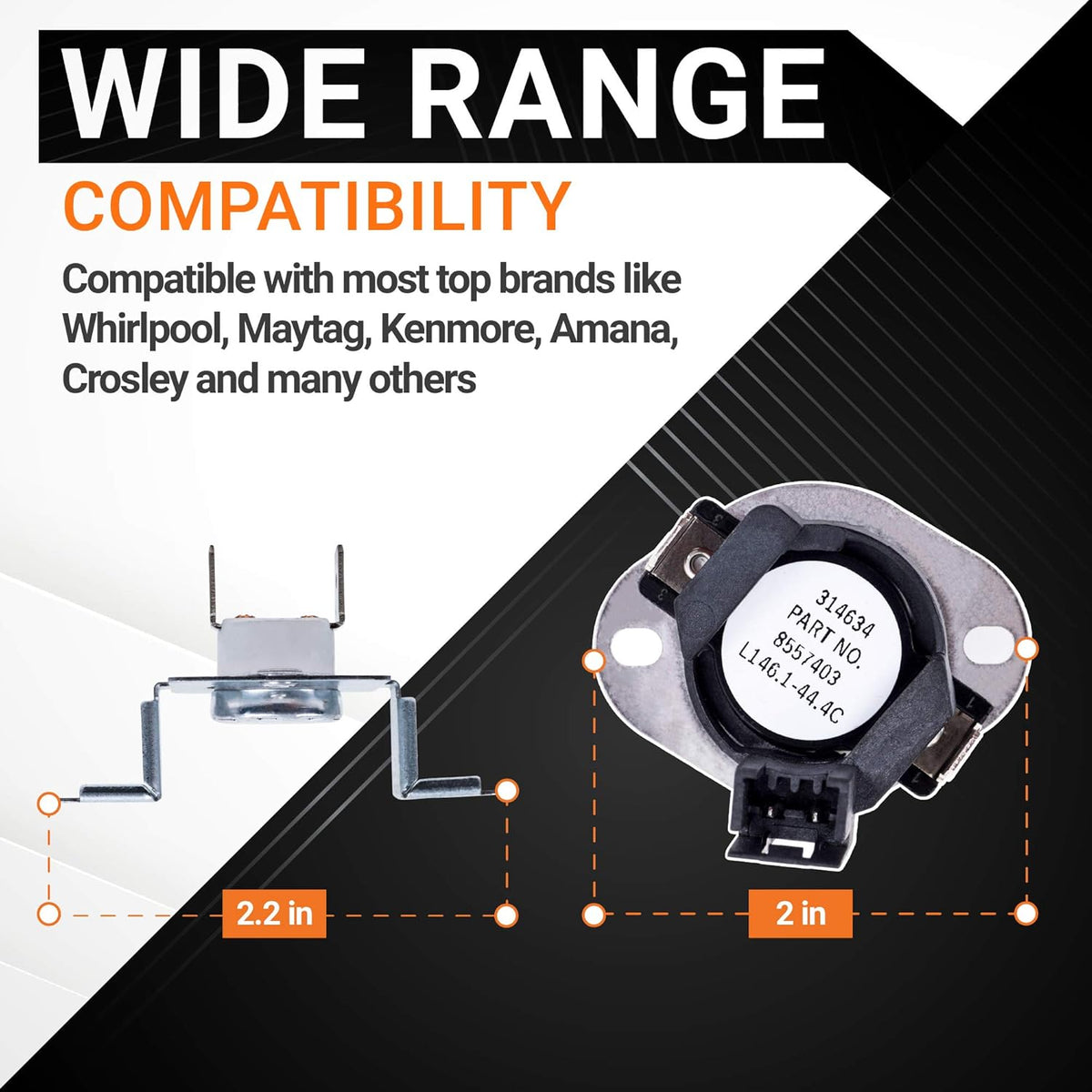 280148 Dryer Thermal Cut Off Replacement Kit Includes 8557403 Thermostat & 8318314 Thermal Fuse