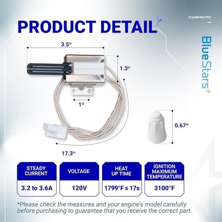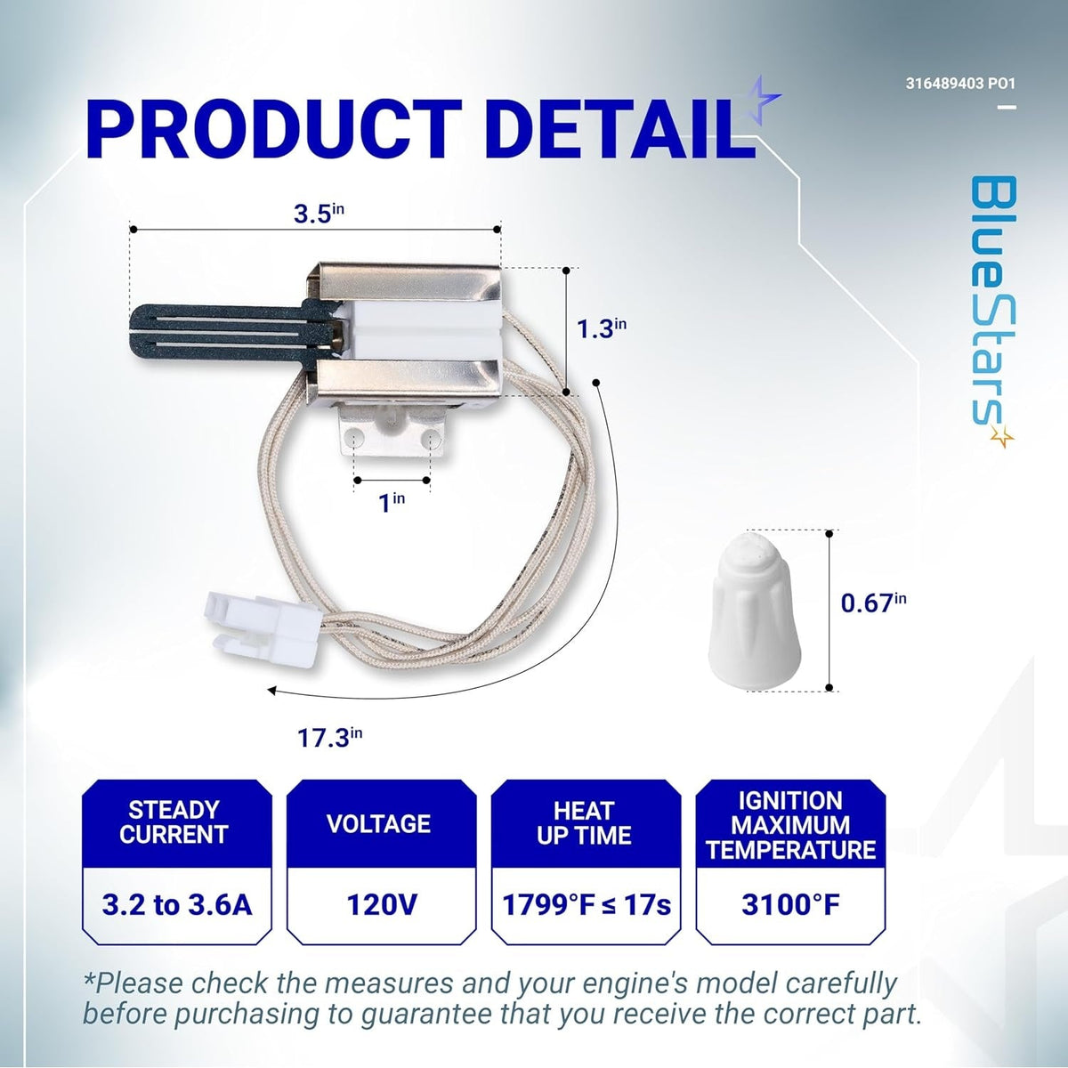 - Package Includes: 316489403 Range Oven Igniter and 2 Ceramic nuts