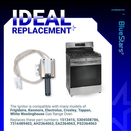 - Wide Compatibility: Compatible with Frigidaire, Crosley, and other brands of gas ranges, ovens, and stoves. Replaces part numbers: 1513415, 5304508786, 7316489403, AH2364063, EA2364063, PS2364063.