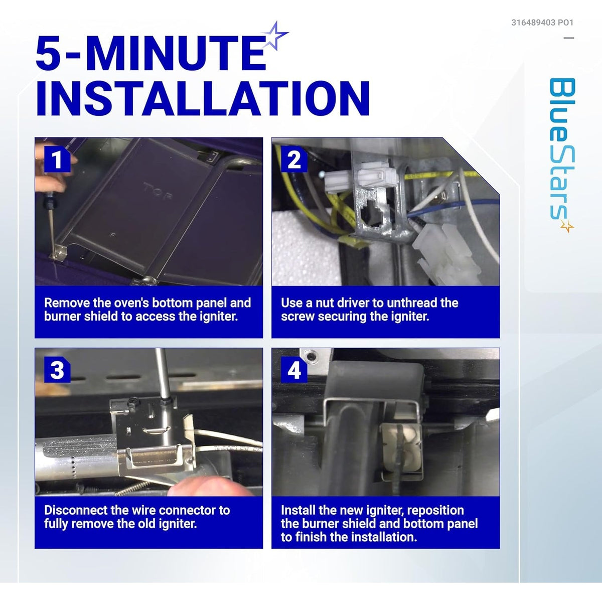 - Easy to Install: A quick 5-minute fix! Disconnect oven power and wear work gloves before starting any repair. Simply remove the old igniter and connect the wires to the new igniter. Ensure hands are clean and dry to avoid electrical connection issues.
