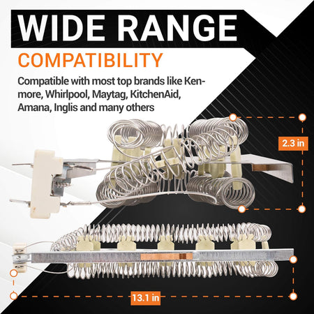 - Direct replacement for numerous electric dryer models.