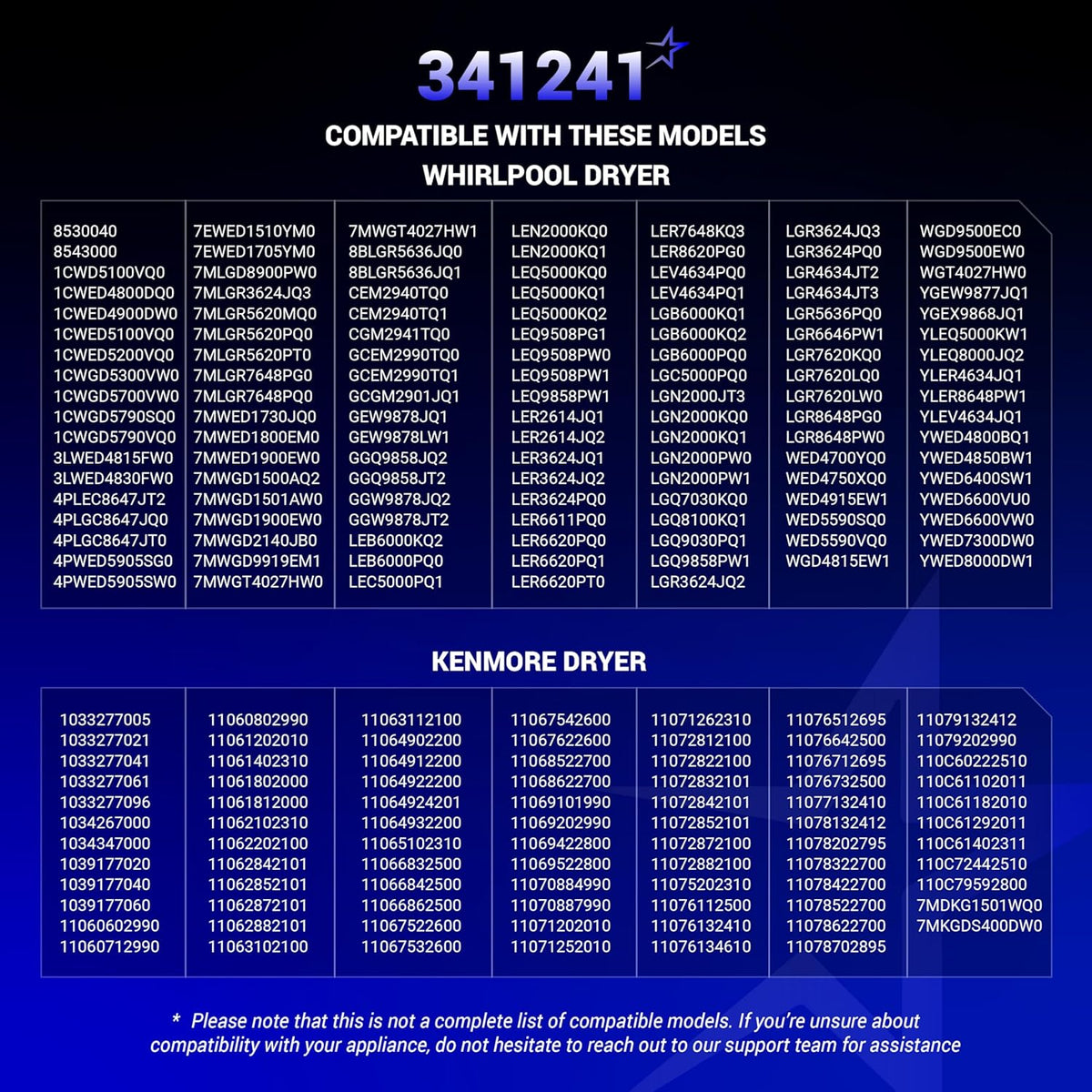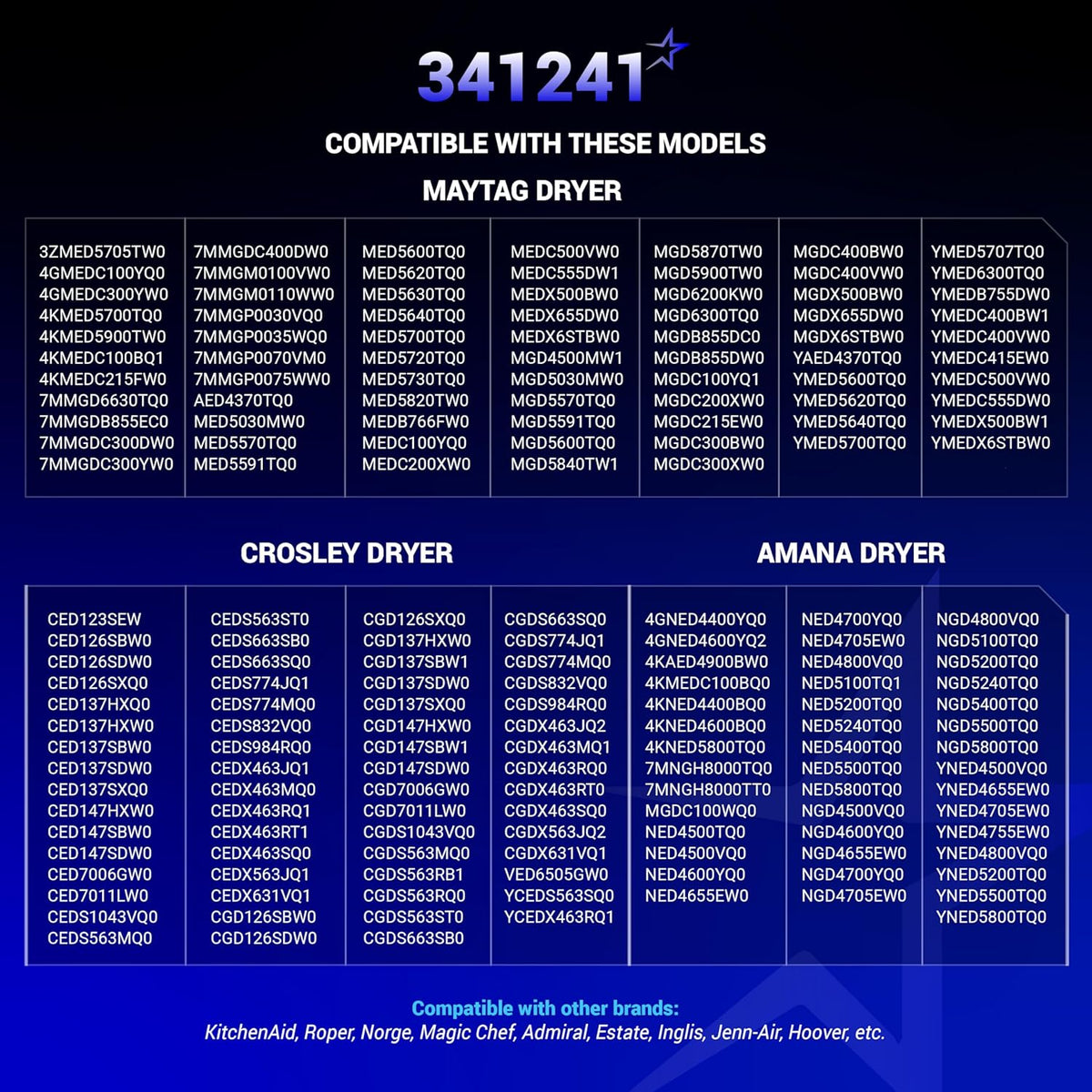 - Fits many Whirlpool, Kenmore, Maytag, Crosley, Amana, and Roper dryers.