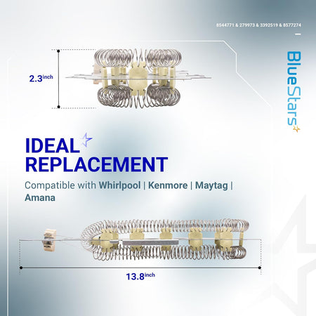 This vital part provides the heat necessary for efficient drying. Specifically designed to match original specifications, it directly replaces part numbers 8544771 and PS11746337.