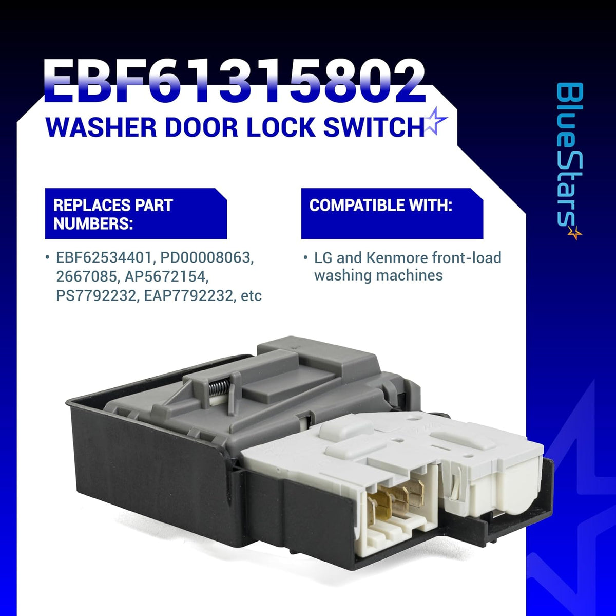 The EBF61315802 replaces part numbers: EBF62534401, PD00008063, 2667085, AP5672154, PS7792232, EAP7792232, and more. It is compatible with LG and Kenmore front-load washing machines, including: