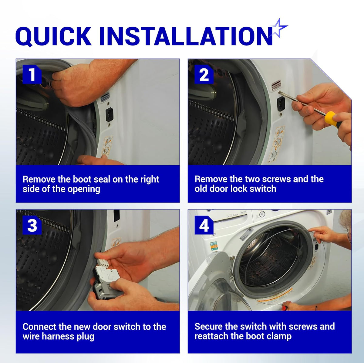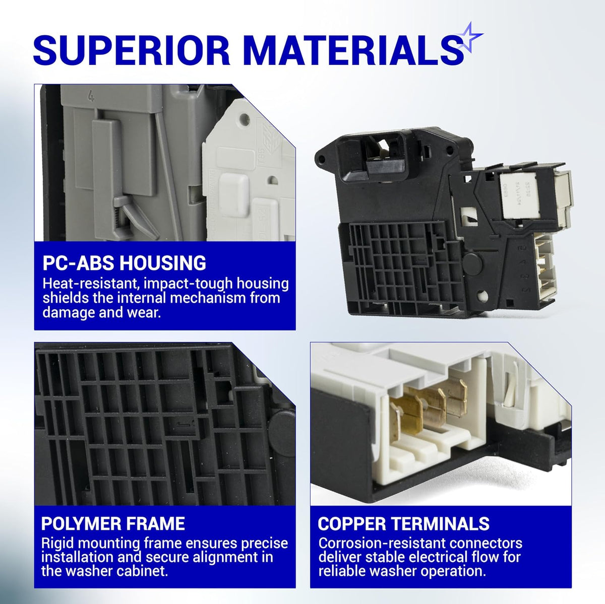 Ensure the safety and efficiency of your washing machine with the EBF61315802 Washer Door Lock Switch. This essential component prevents the door from opening during wash and spin cycles, effectively resolving common washer issues.