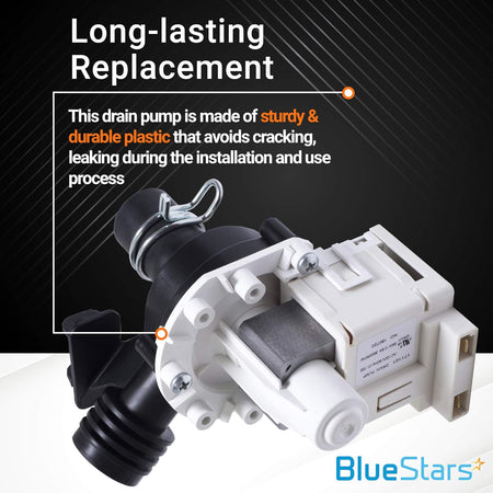 IMPORTANT NOTE: Please check the size and part number of your OE Drain Pump before purchasing. You can send us your dishwasher model number, and we will help you confirm compatibility. Contact us with any concerns about your purchase; we are here to assist you.