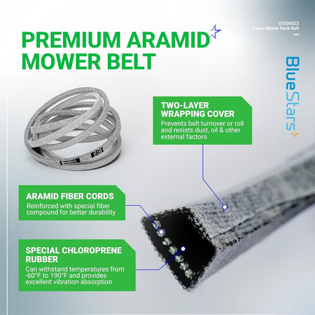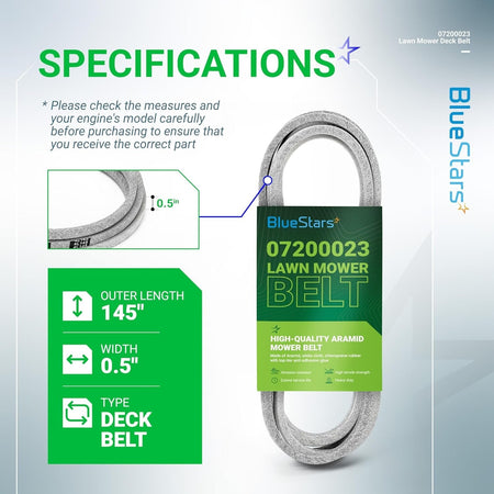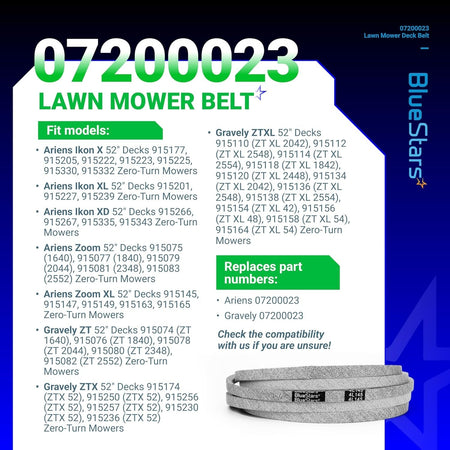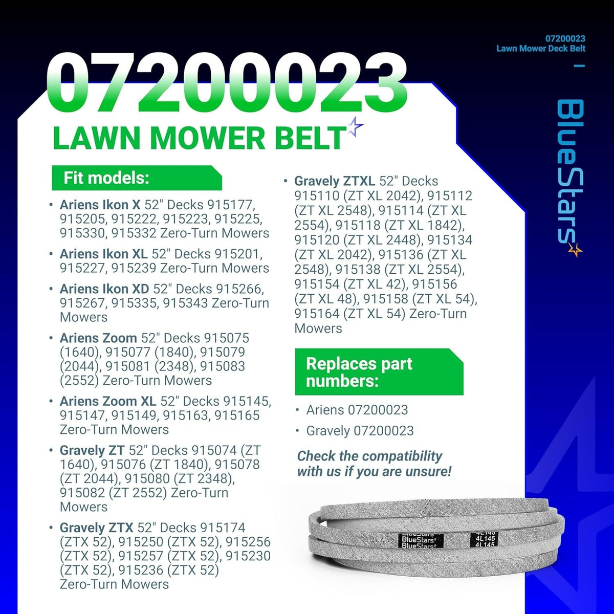 This Lawn Mower Deck Belt replaces part numbers: Ariens 07200023, Gravely 07200023