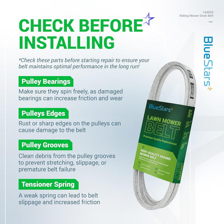 • Verify correct tension after installation; the belt should not be overly tight or loose.