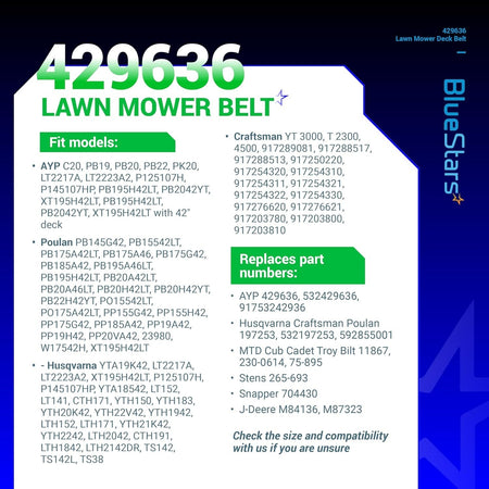 - Note: Always verify fitment by cross-referencing your mower's original part number before ordering.