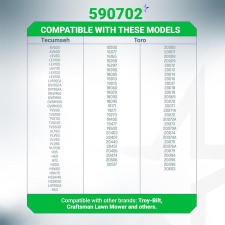 Compatible with many models of Tecumseh and Toro Lawn Mower