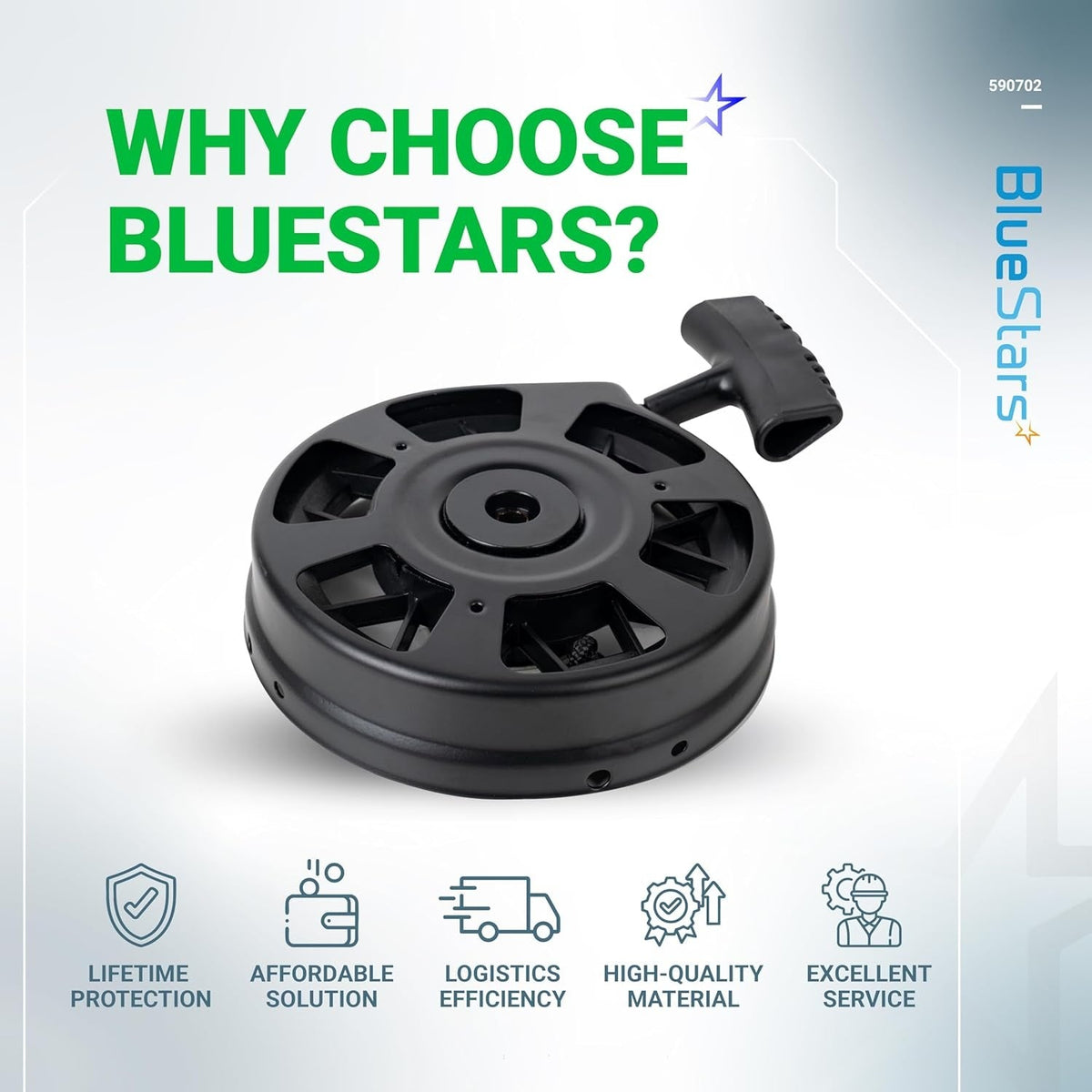 BlueStars's Recoil Starter is constructed from top-grade materials, including durable metals and high-performance plastics.