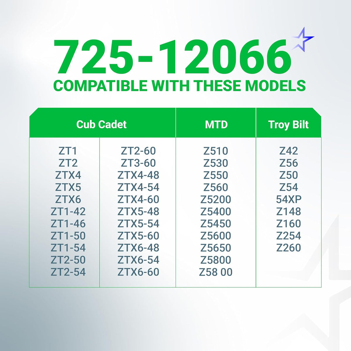 - Cub Cadet Models: ZT1-42, ZT1-46, ZT1-50, ZT1-54, ZT2-50, ZT2-54, ZTX6-60